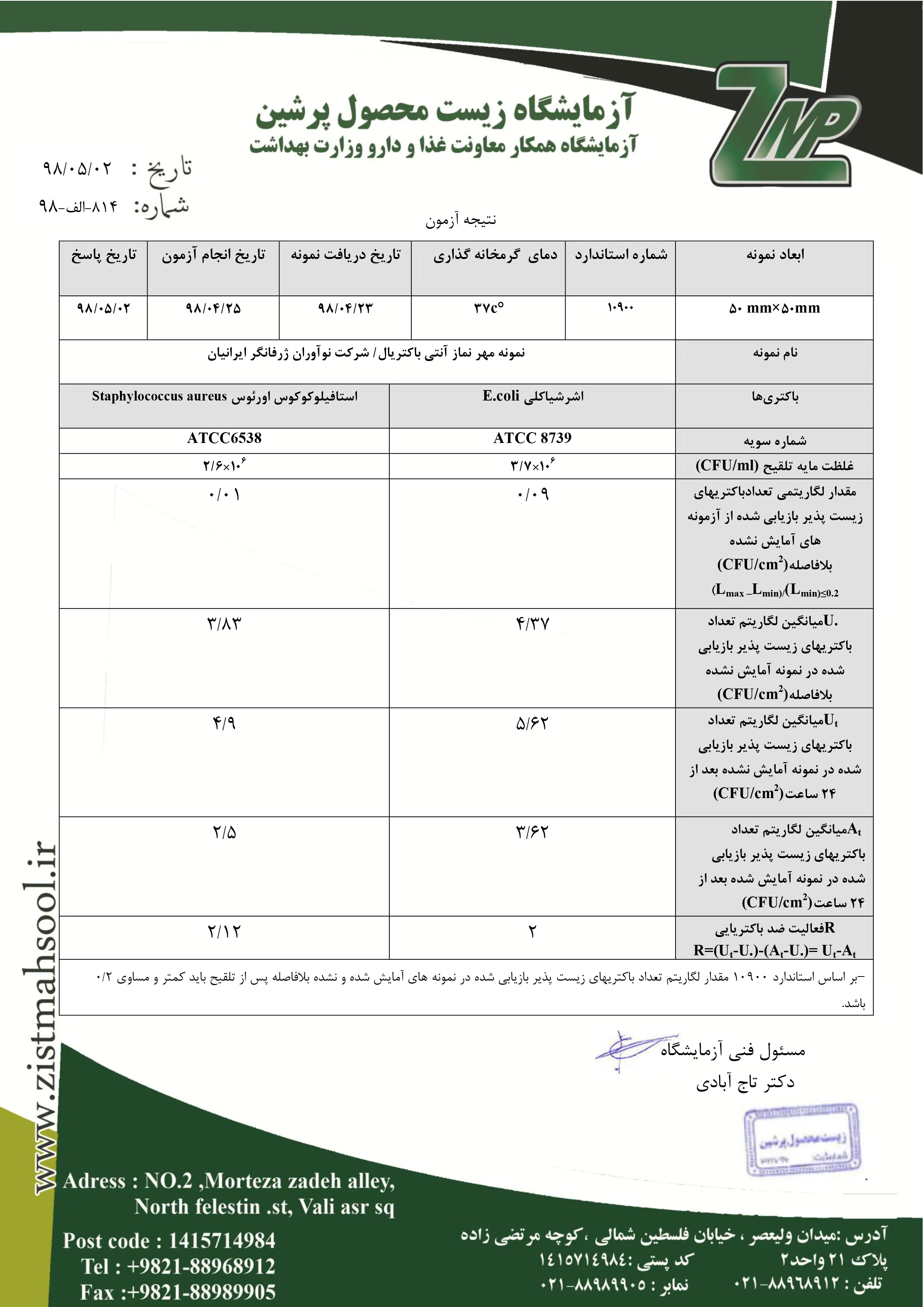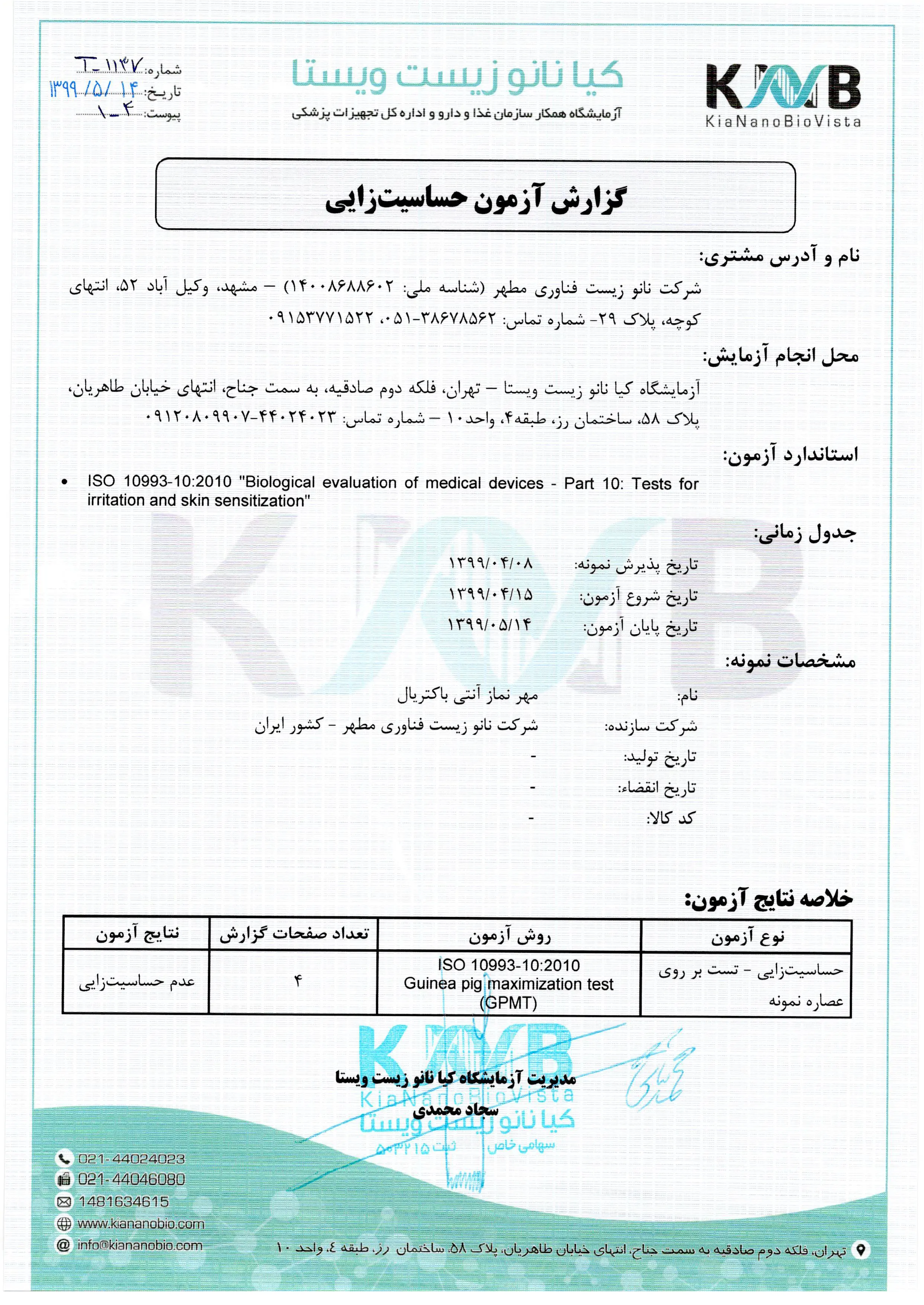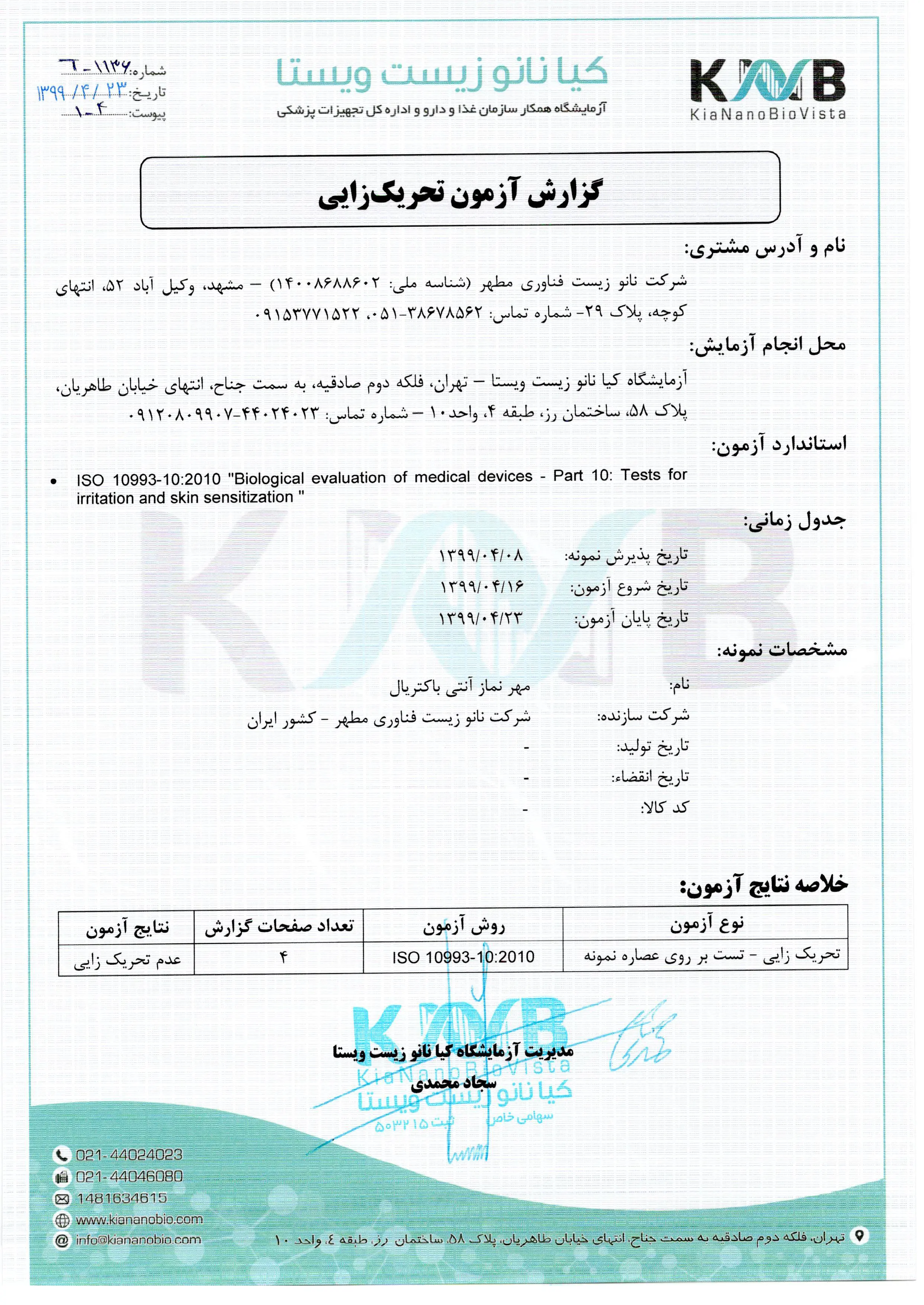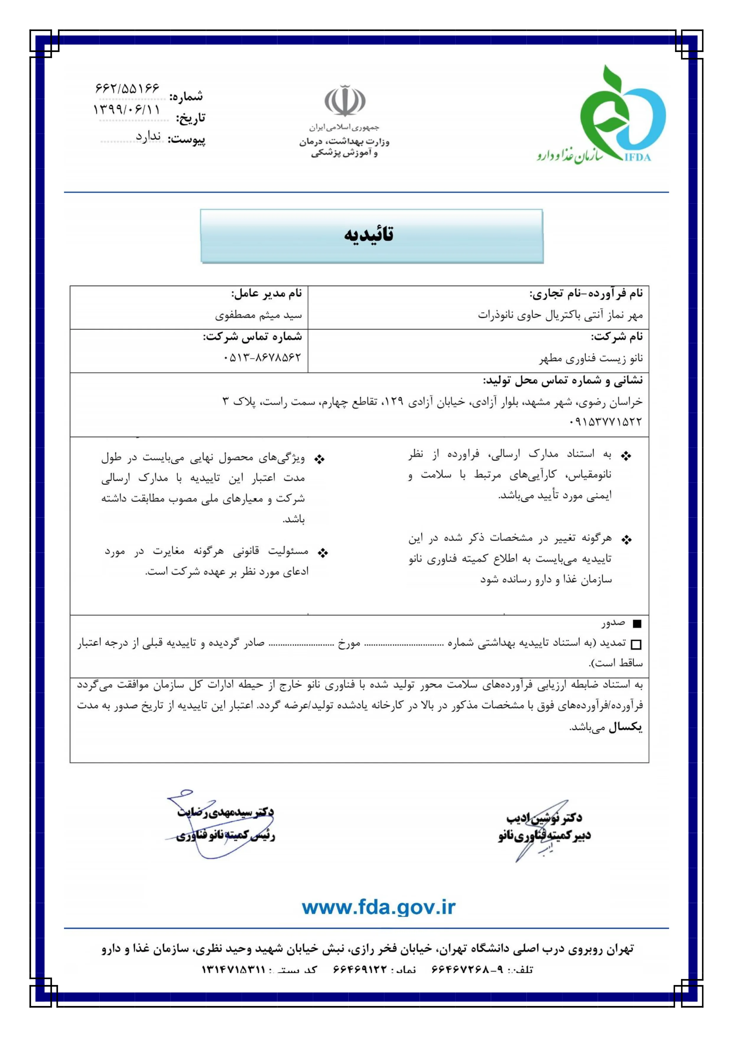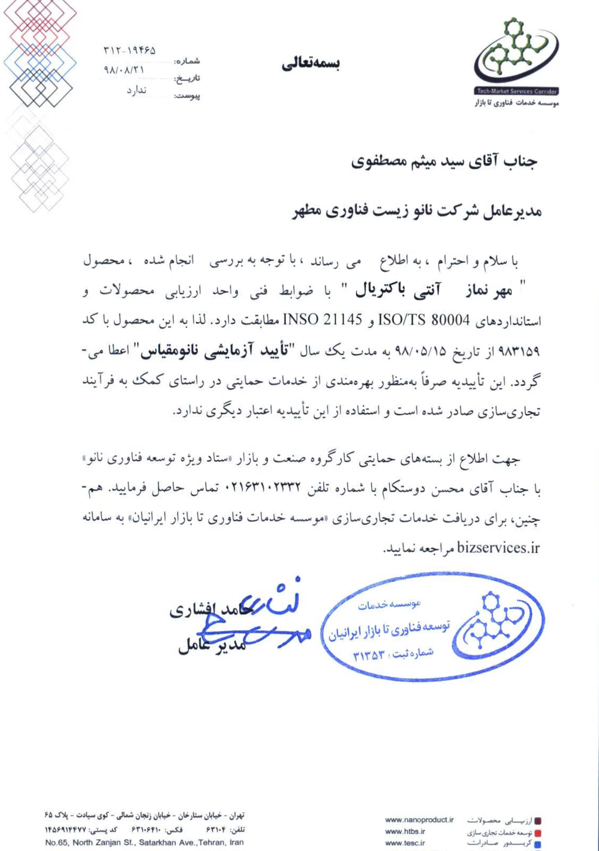 نانو مهر مطهر دارای تاییدیه و گواهینامه های معتبر